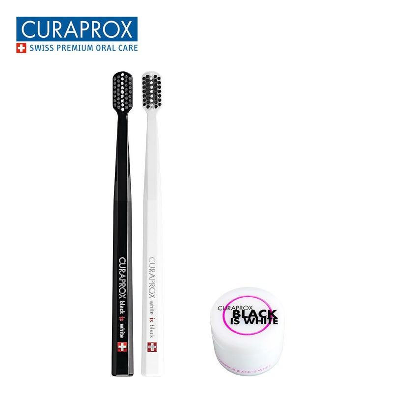 商品名 クラプロックス 歯ブラシ ブラックイズホワイト(白×黒)2本セット+粉歯磨き20g