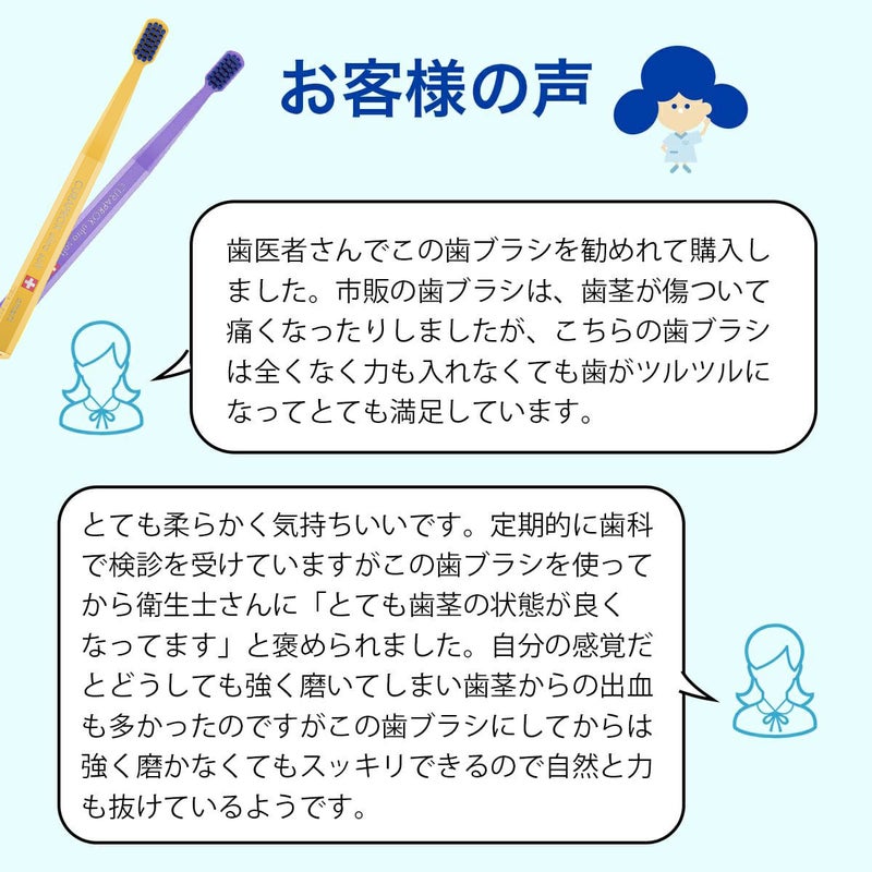 • ・当社の歯ブラシは他社製品よりもかなり柔らかい毛先で出来ておりますので、血が出た場合は病気が疑われます。かかりつけの歯医者さんへ行くことをお勧め致します。